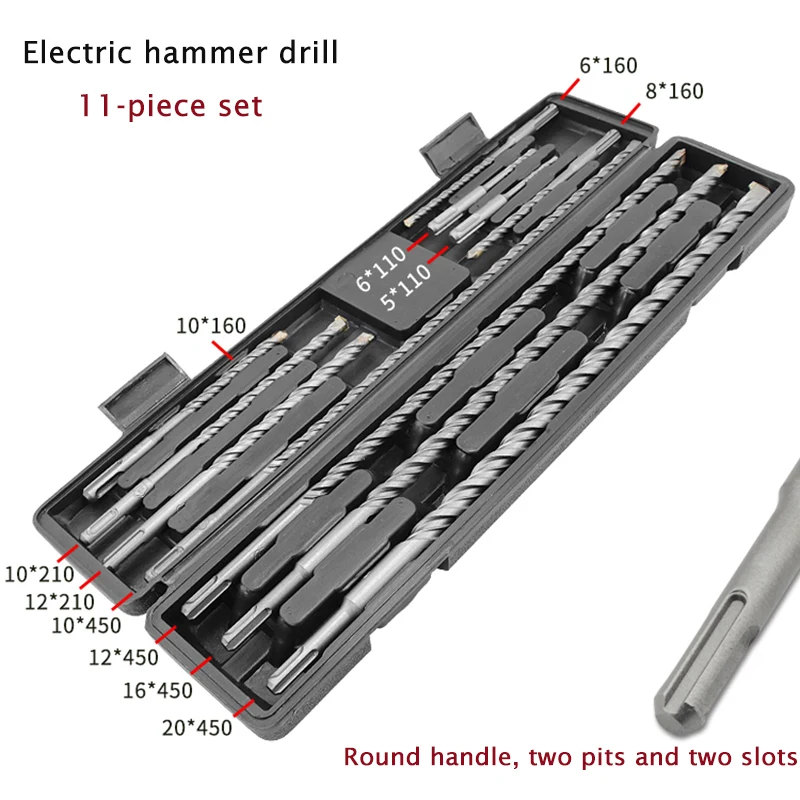 11pcs/set Carbide Electric Hammer Drill Bits For Concrete Stone Impact Metal Drill Bit Round Grip D