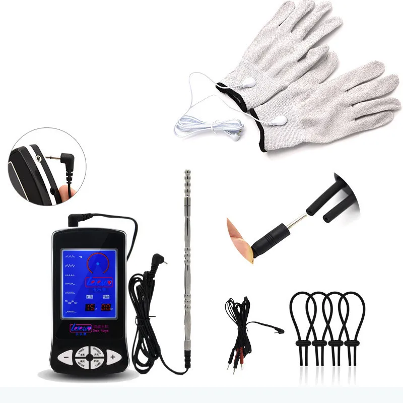HIGH QUALITY Electric Shock Gloves Cock Rings for Couples Electro Shock Male Urethral Sound Penis Plugs Medical