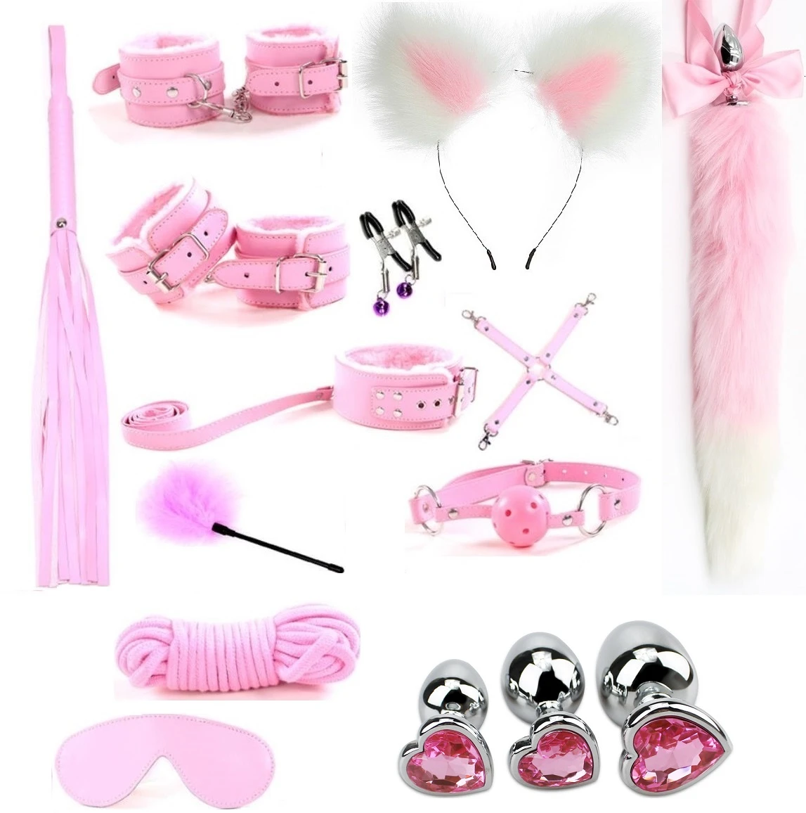 13Pcs/15Pcs Metal Anal Butt Plug Sex Handcuffs bdsm Bondage Set Nipple Clamps Erotic Sex Toys Produ